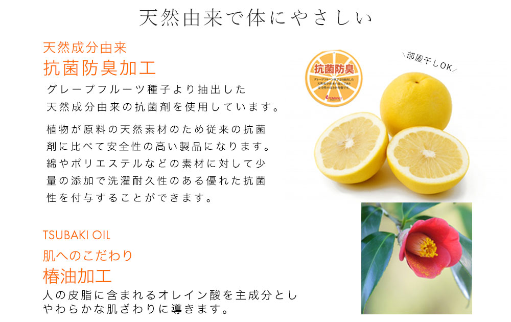 天然鉱石「ブラックシリカ」を糸に練りこみ遠赤外線による優れた保温力を発揮します。